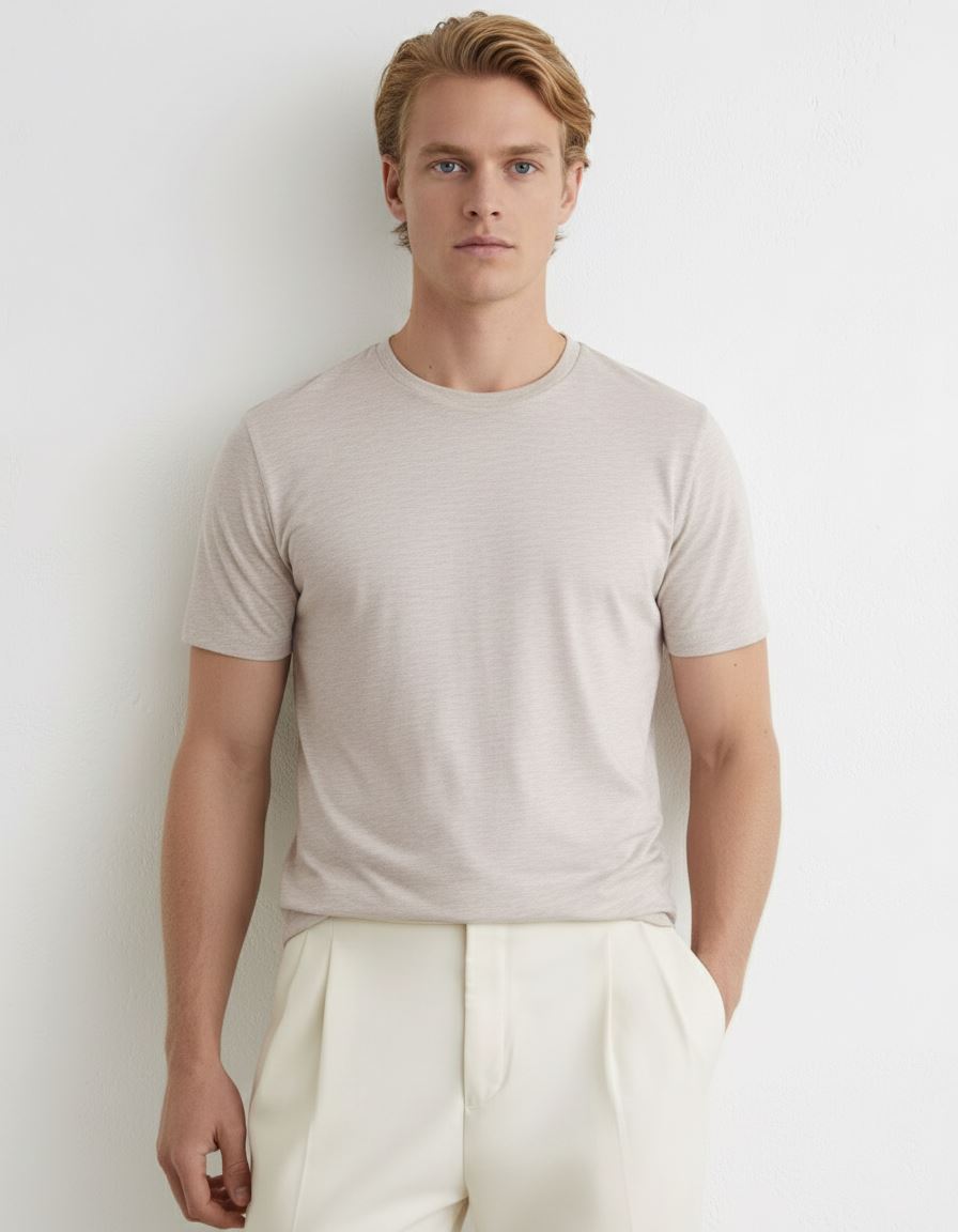 Classic crew neckline and clean short sleeves — timeless and versatile