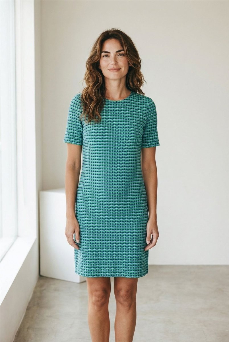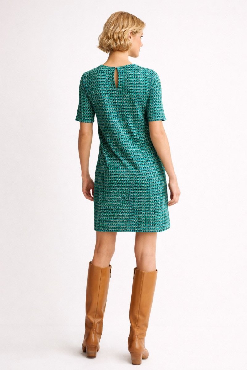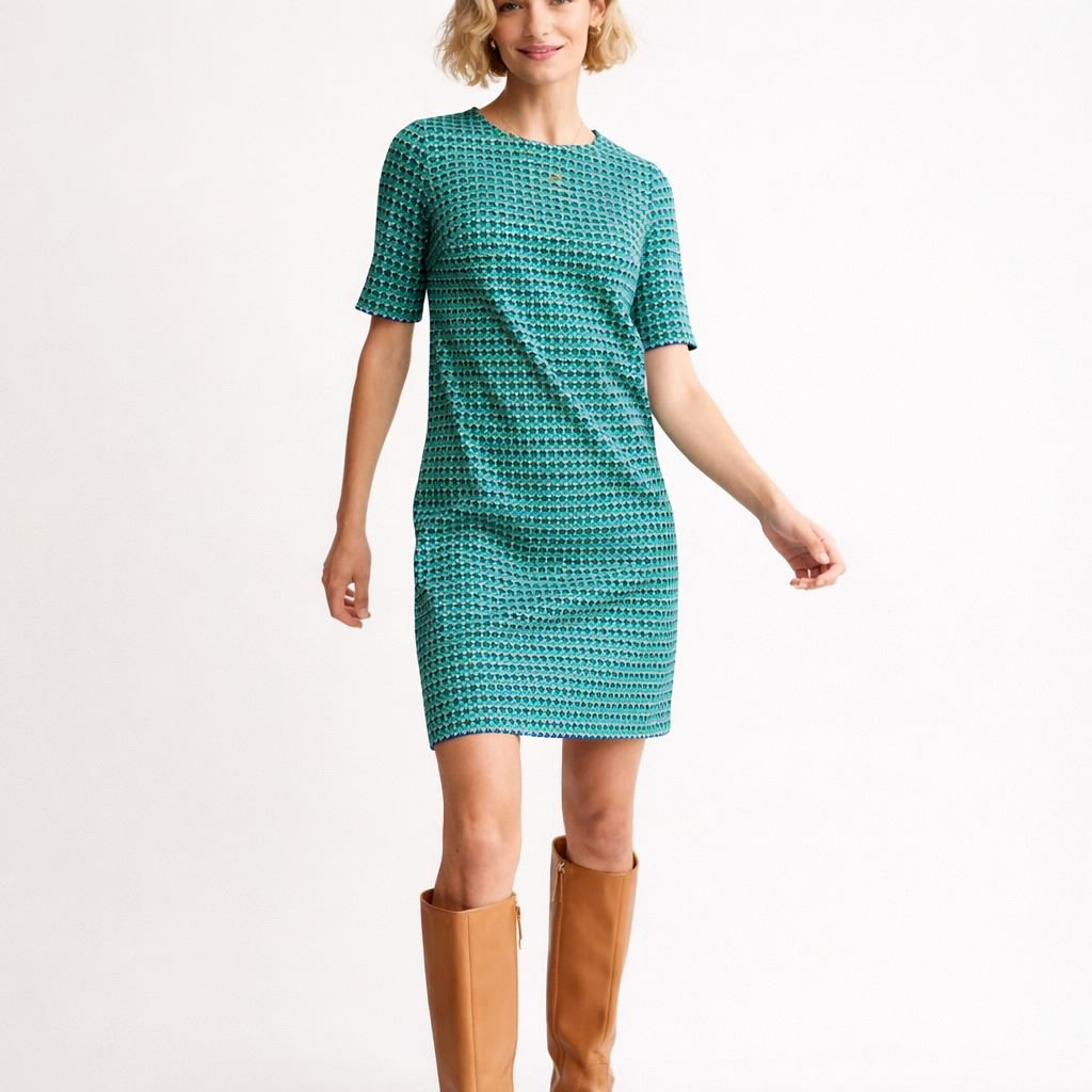 Stand out with effortless sophistication in this Boden Ivy Jacquard Jersey Dress, featuring a bold Terrace Geo print in bright green that adds contemporary flair to classic tailoring. Made from comfortable jacquard jersey, this dress is soft to the touch with just enough structure to flatter your silhouette.