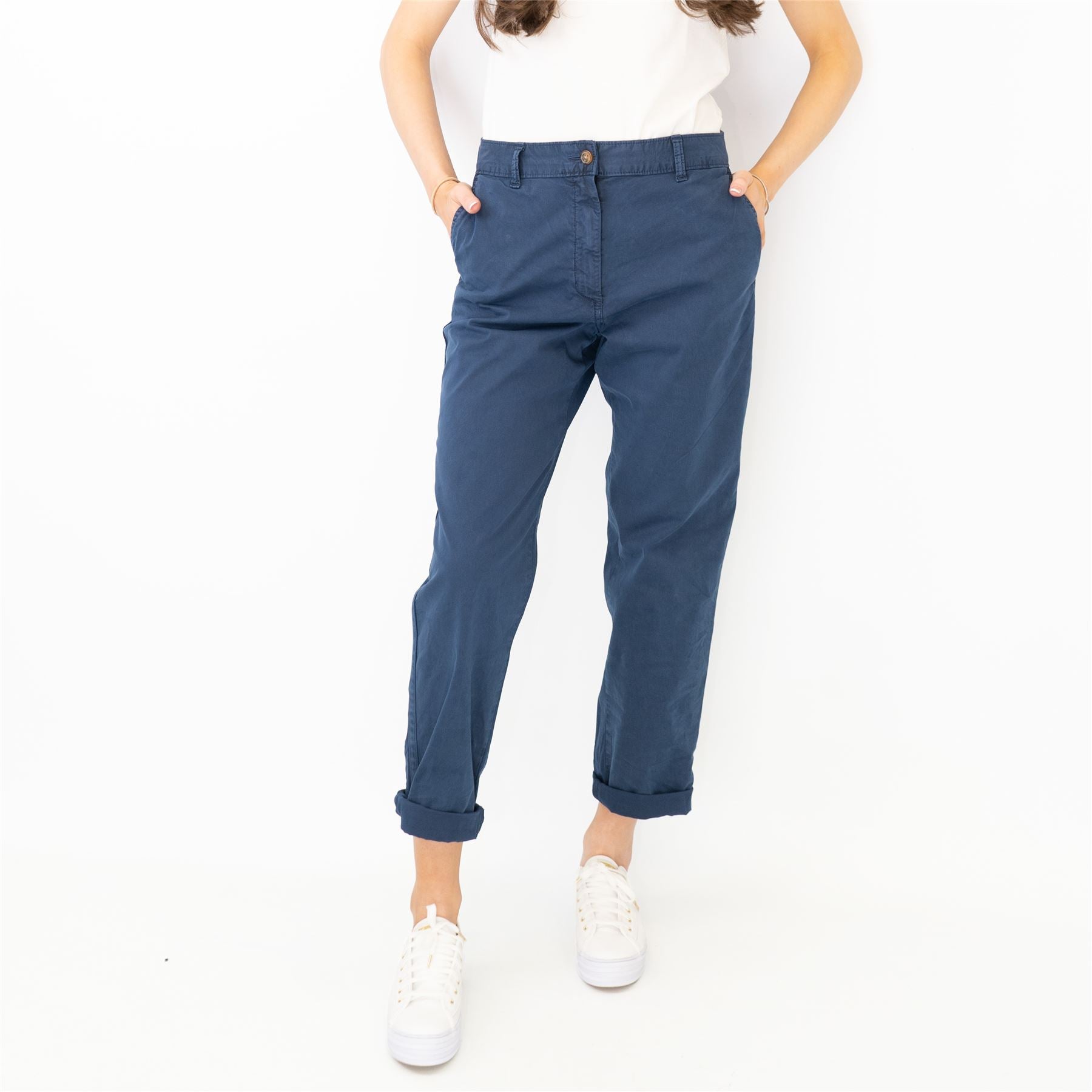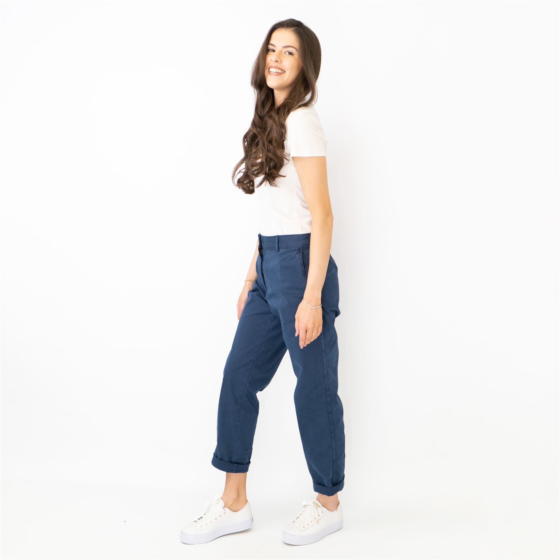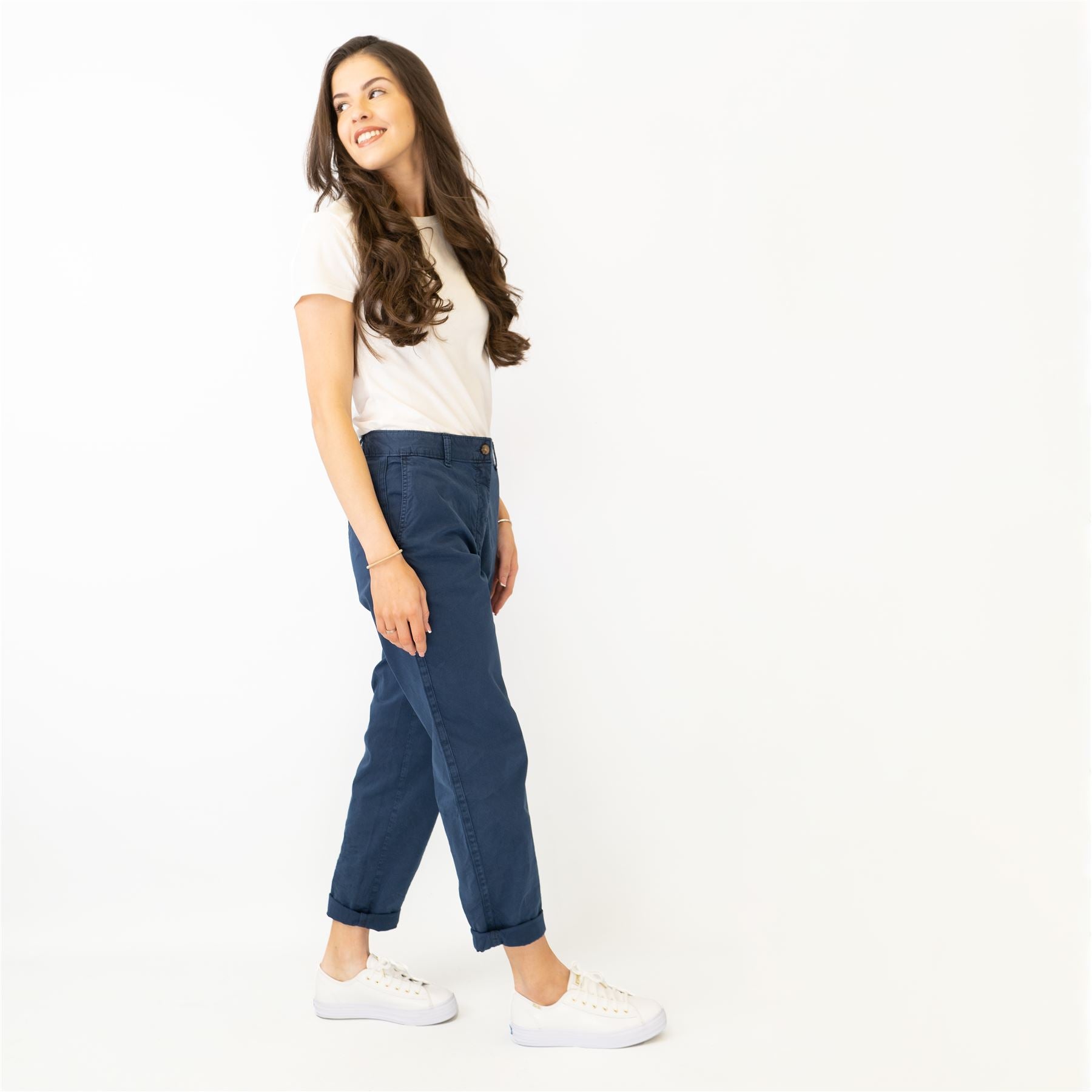These timeless cotton-rich chinos are a smart-casual essential. Tapered leg shape, in an ankle-grazer length with neat rolled cuffs. Added stretch ensures comfort. Garment dyed for an authentic washed look, with side tape for utility styling. Slanted pockets at the front, plus an extra pocket at the back, for useful storage.