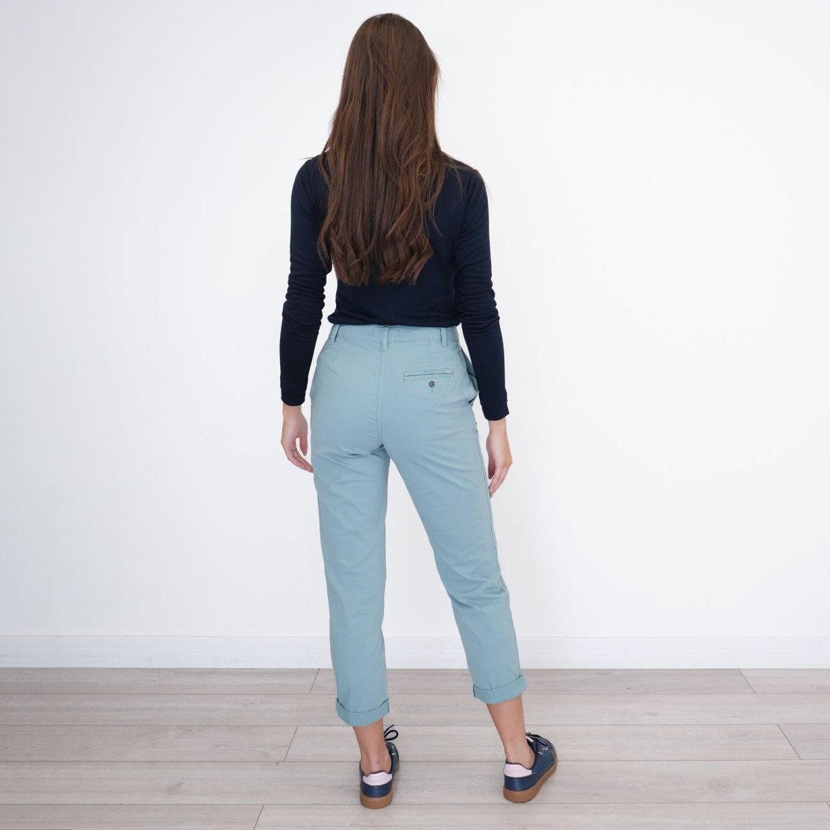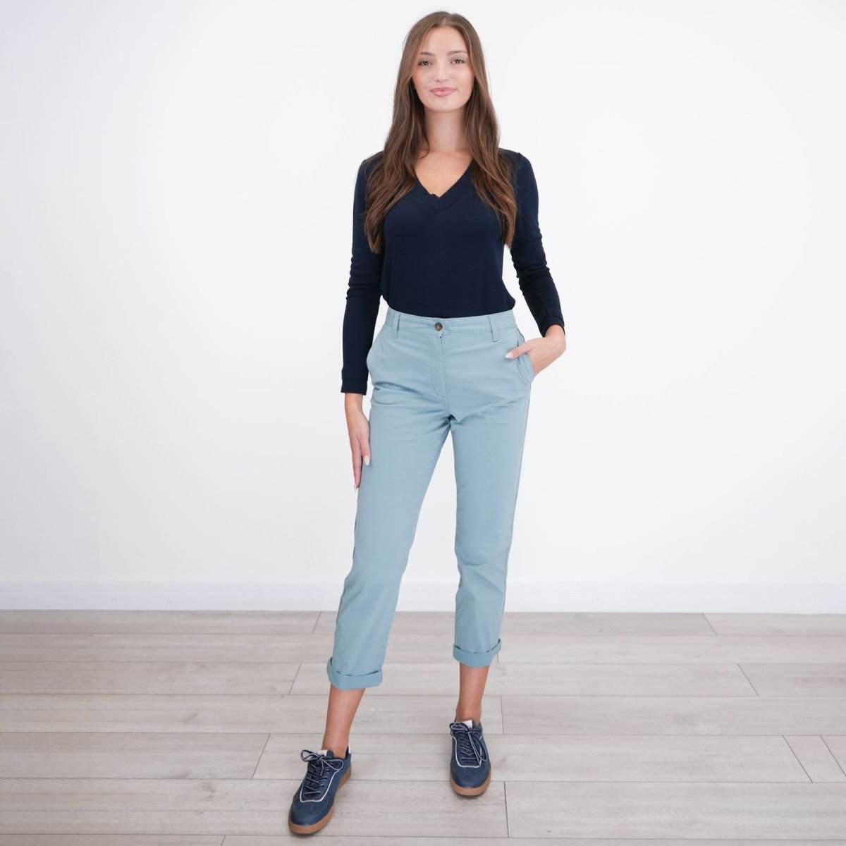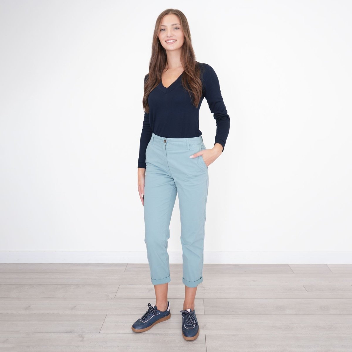 M&S Cotton Rich Tapered Ankle Grazer Chinos Aqua Blue - Quality Brands Outlet