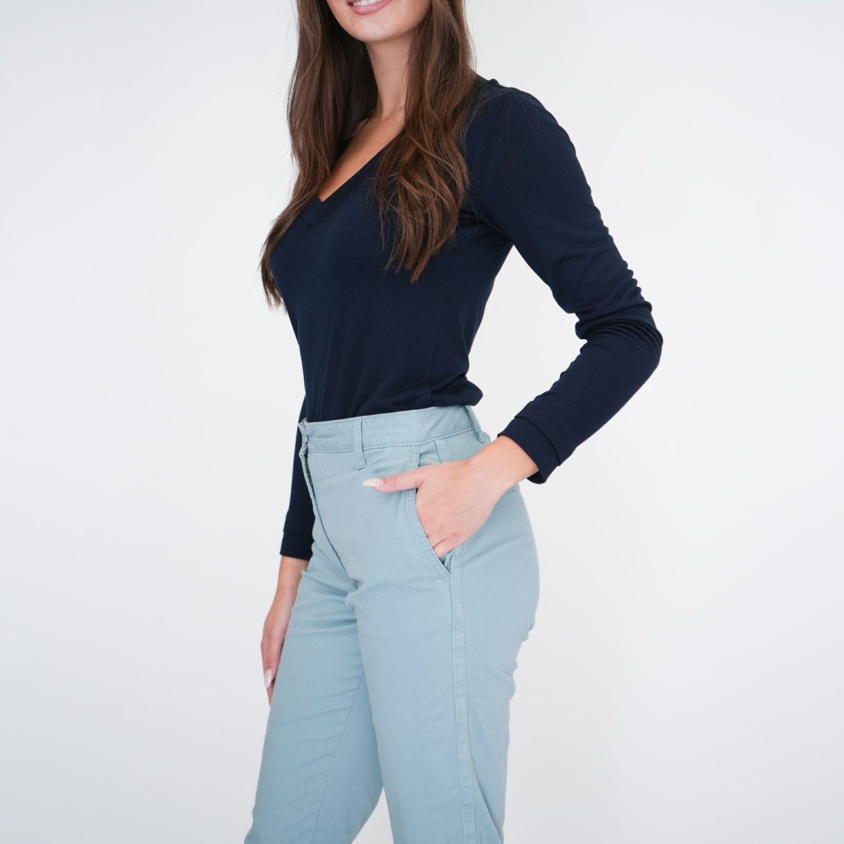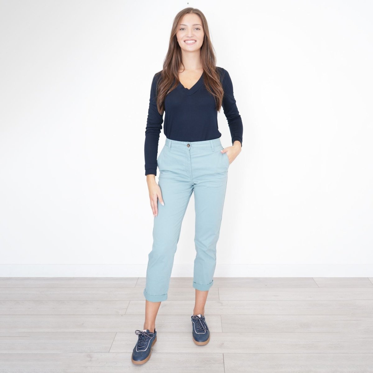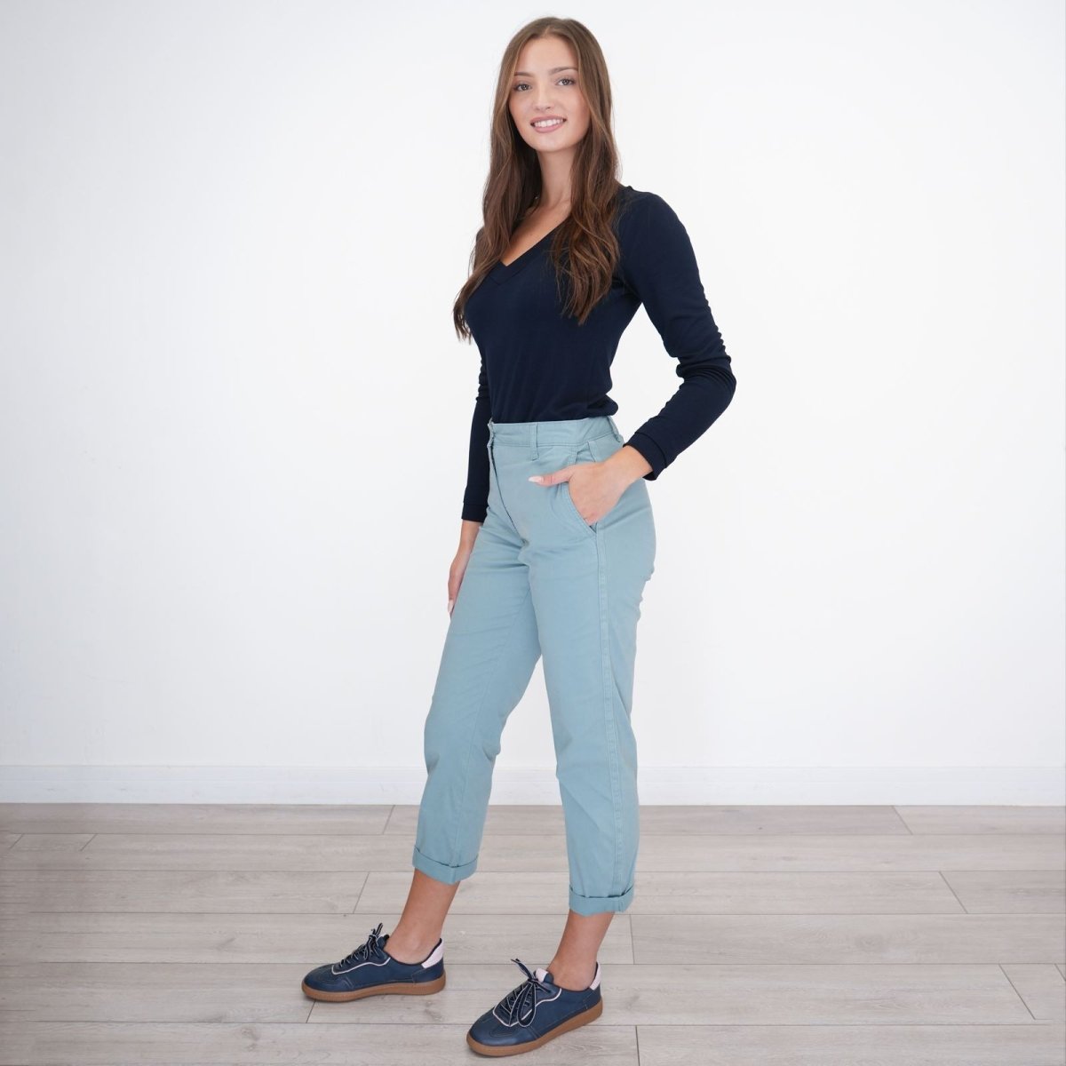 M&S Cotton Rich Tapered Ankle Grazer Chinos Aqua Blue - Quality Brands Outlet