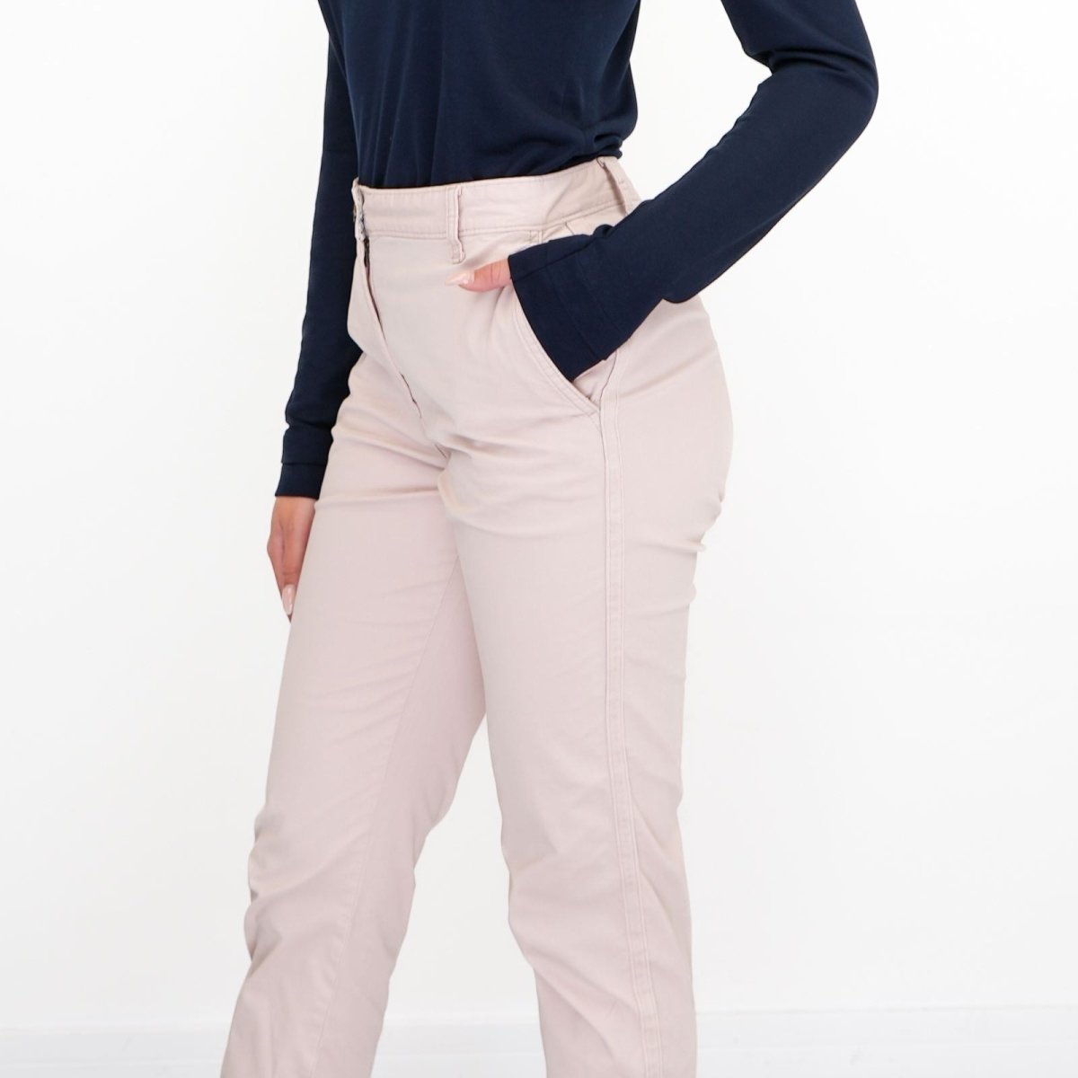 These timeless cotton-rich chinos are a smart-casual essential. Tapered leg shape, in an ankle-grazer length with neat rolled cuffs. Added stretch ensures comfort. Garment dyed for an authentic washed look, with constrasting and distressed side tape for utility styling. Slanted pockets at the front, plus an extra pocket at the back, for useful storage.