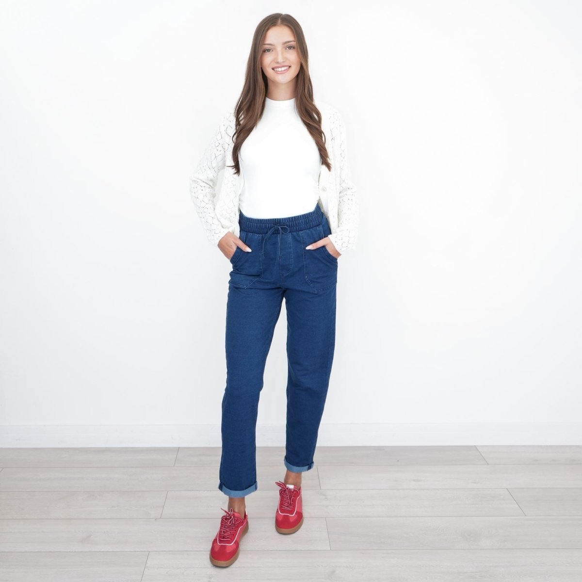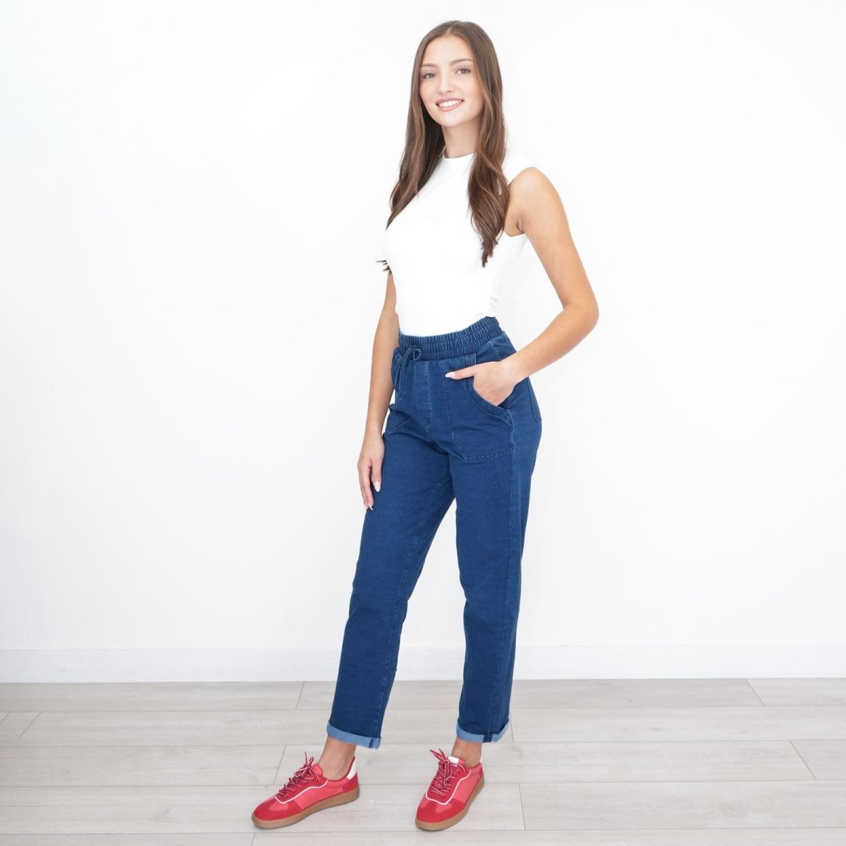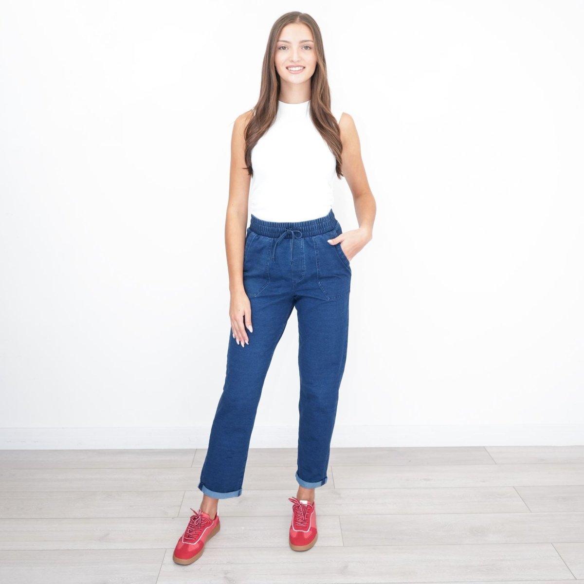 Wear with trainers and a tee for relaxed everyday looks, or dress up with ankle boots and a blouse for smart-casual outfits. These pull-on denim trousers are perfect for comfort-focused, everyday styling.