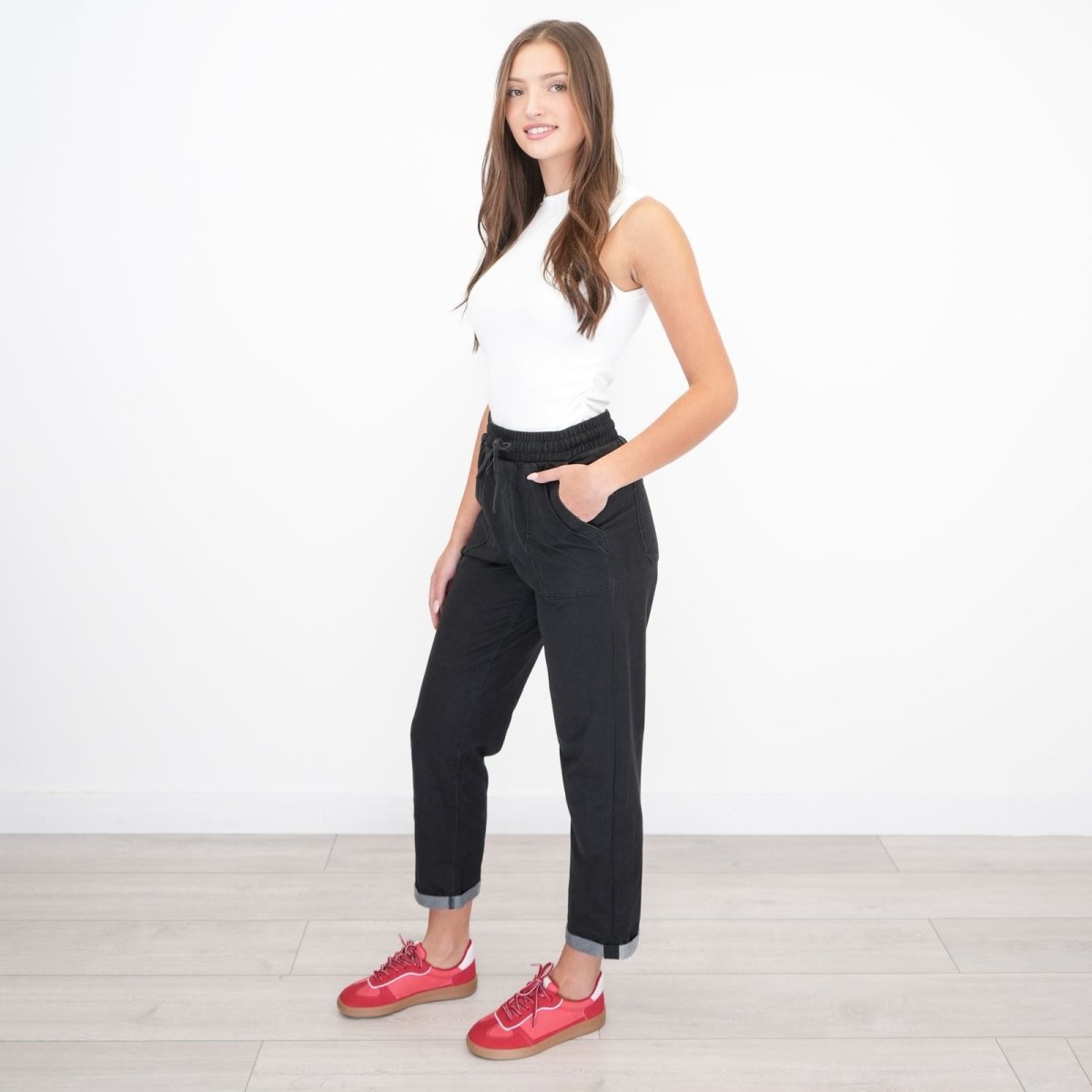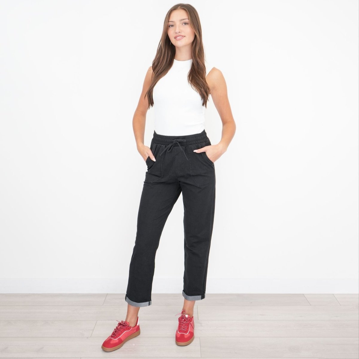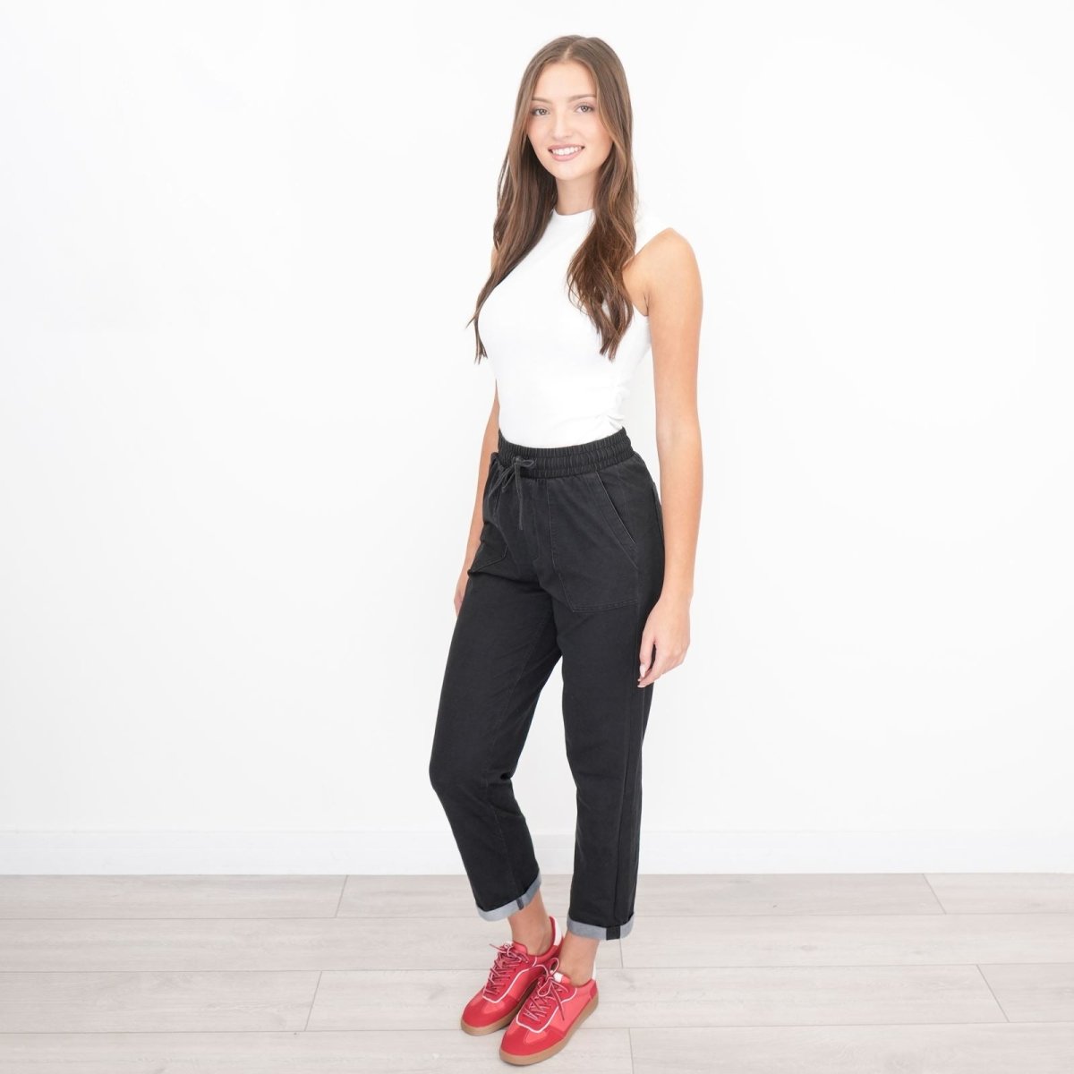 M&S Elasticated Waist Denim Crop Jeans Jogger Black - Quality Brands Outlet