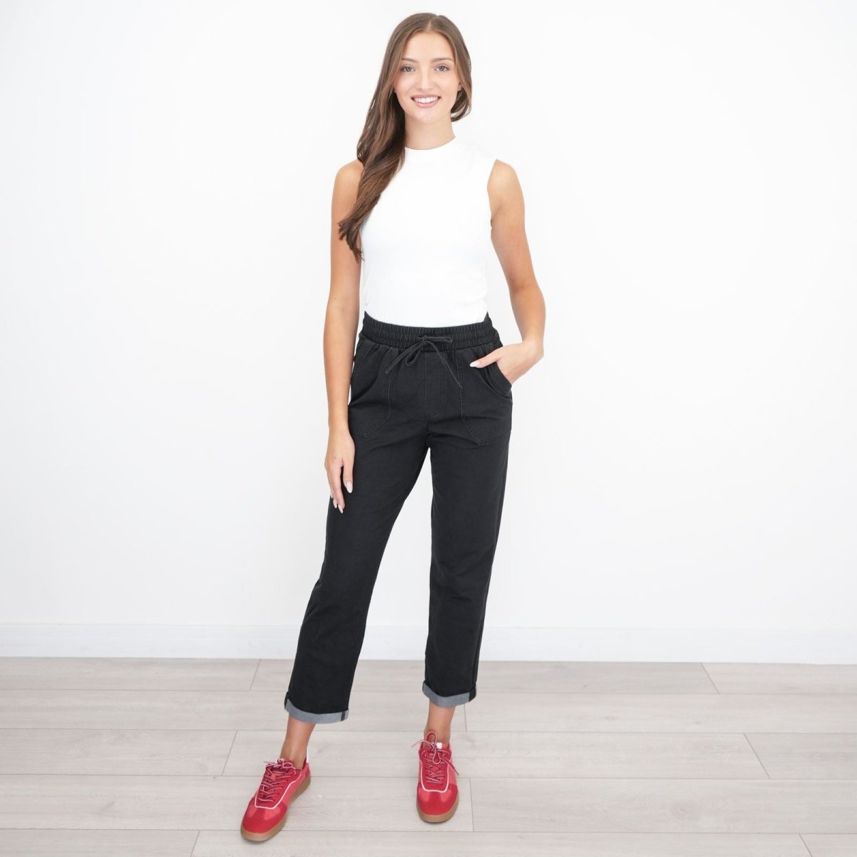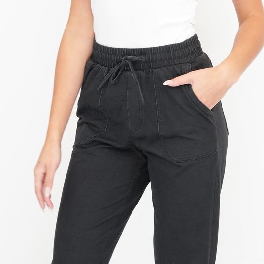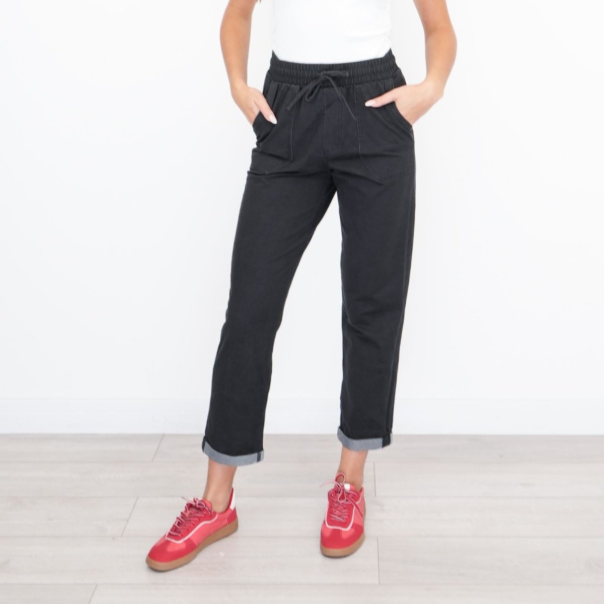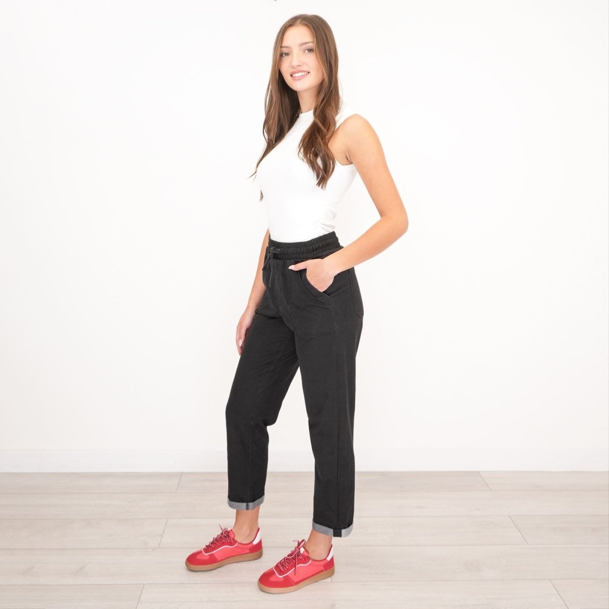 M&S Elasticated Waist Denim Crop Jeans Jogger Black - Quality Brands Outlet