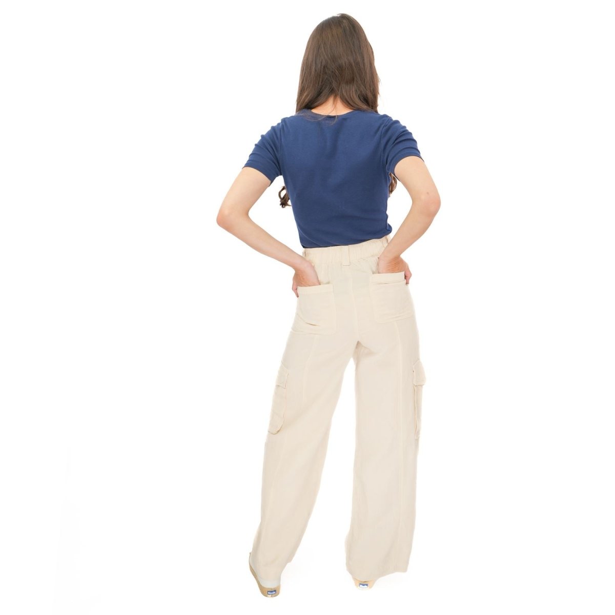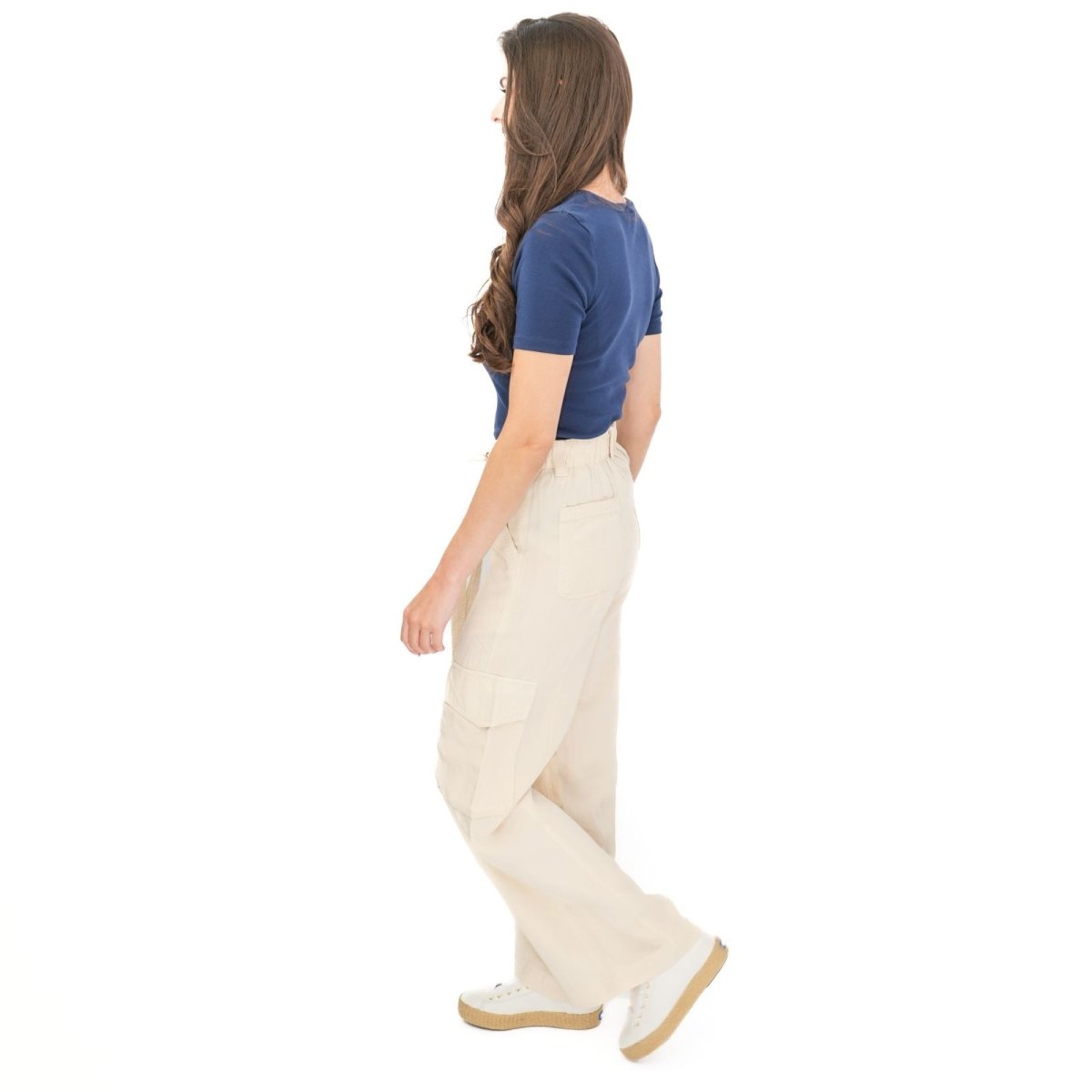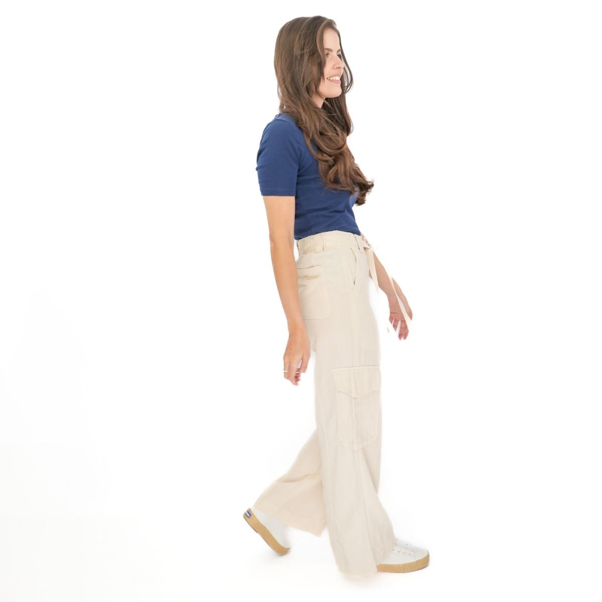 Available in Blue, Khaki and Cream, these trousers style effortlessly with simple tees, lightweight knits or tailored tops — making them ideal for holidays, city breaks, smart-casual outfits or elevated everyday wear.