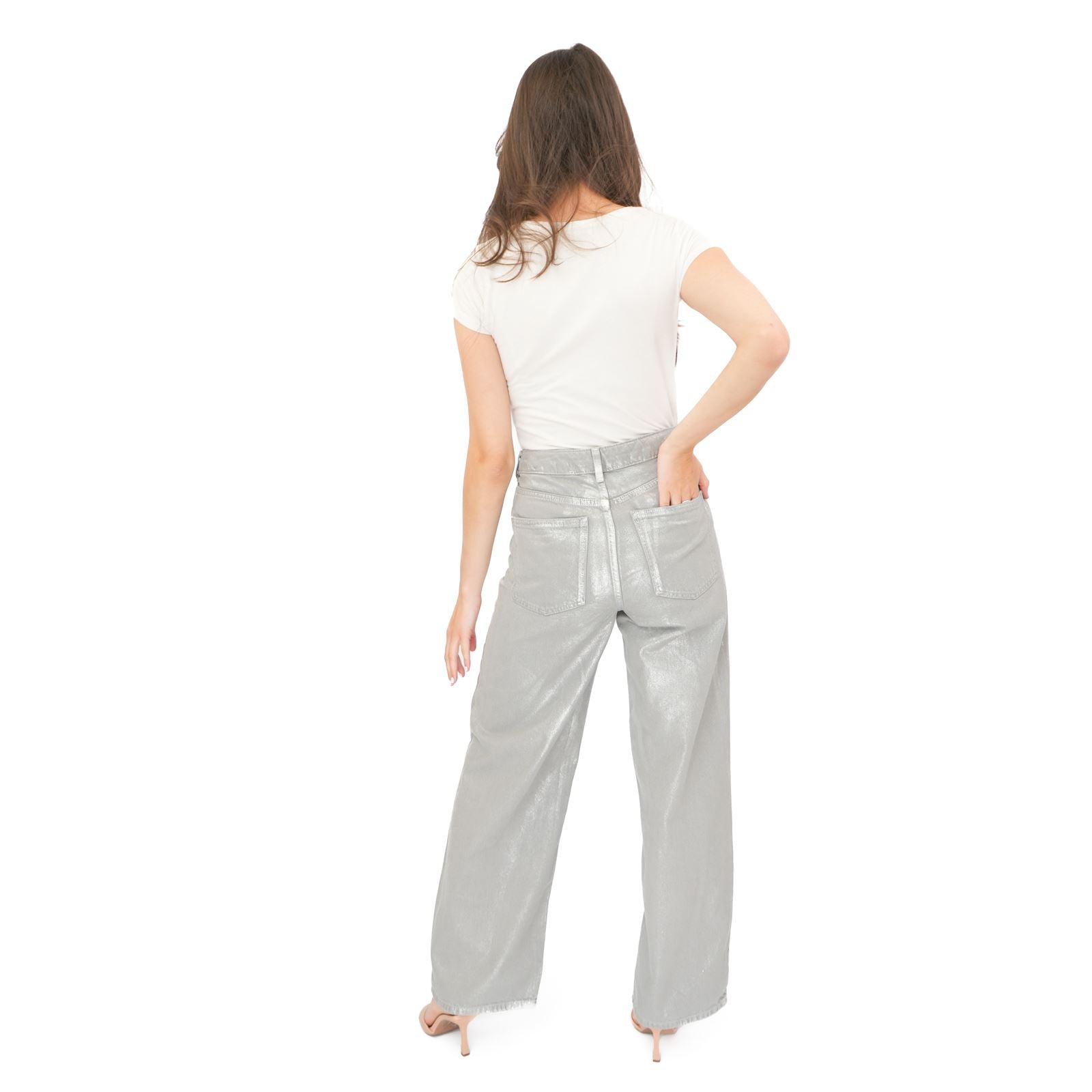M&S Metallic Wide Leg Jeans – High Waist
