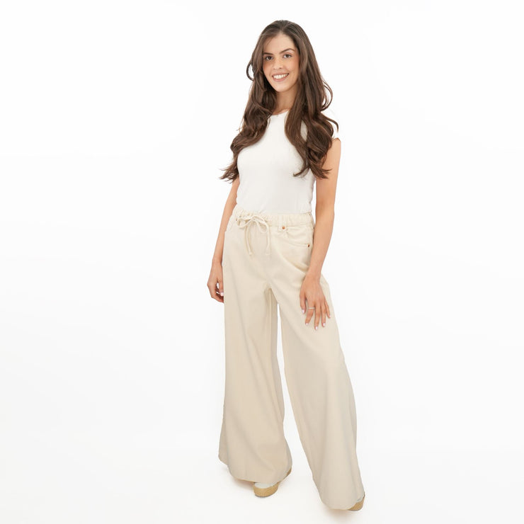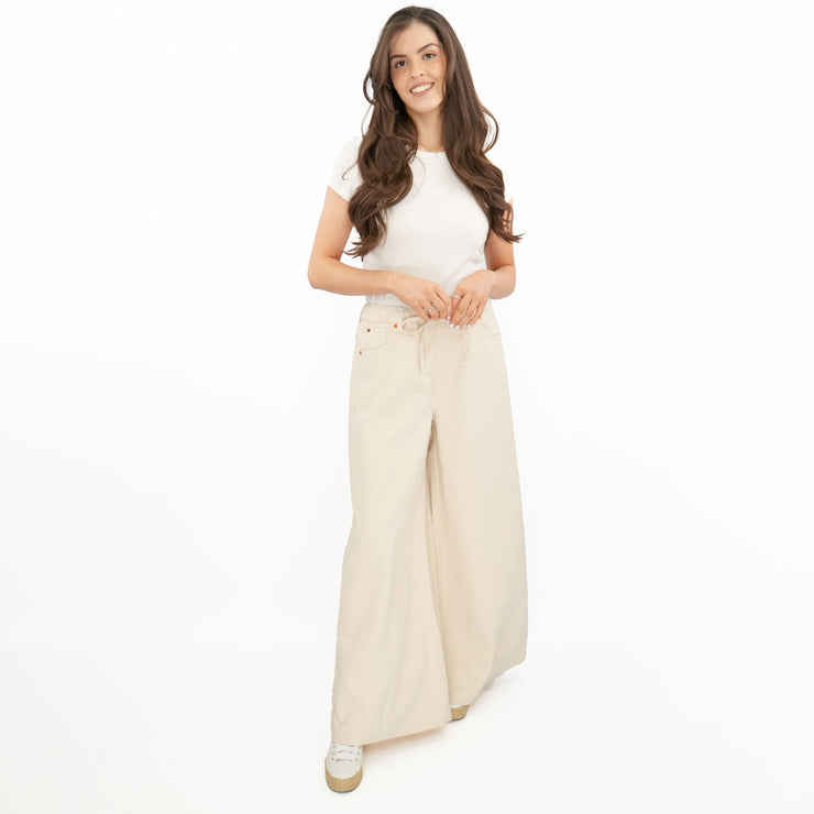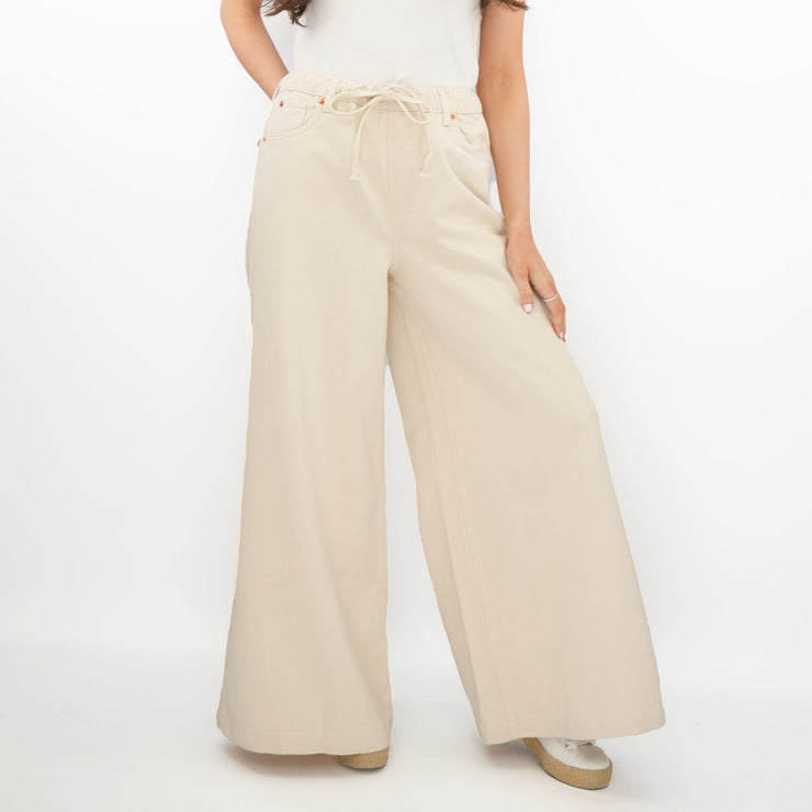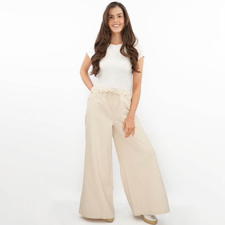 Refresh your off-duty style with these pure cotton jeans — a modern staple for relaxed dressing. Designed in an easy wide-leg silhouette, they feature a flattering high-rise waist with a comfortable elasticated waistband and adjustable drawstring. The classic five-pocket design adds timeless detail and everyday practicality.