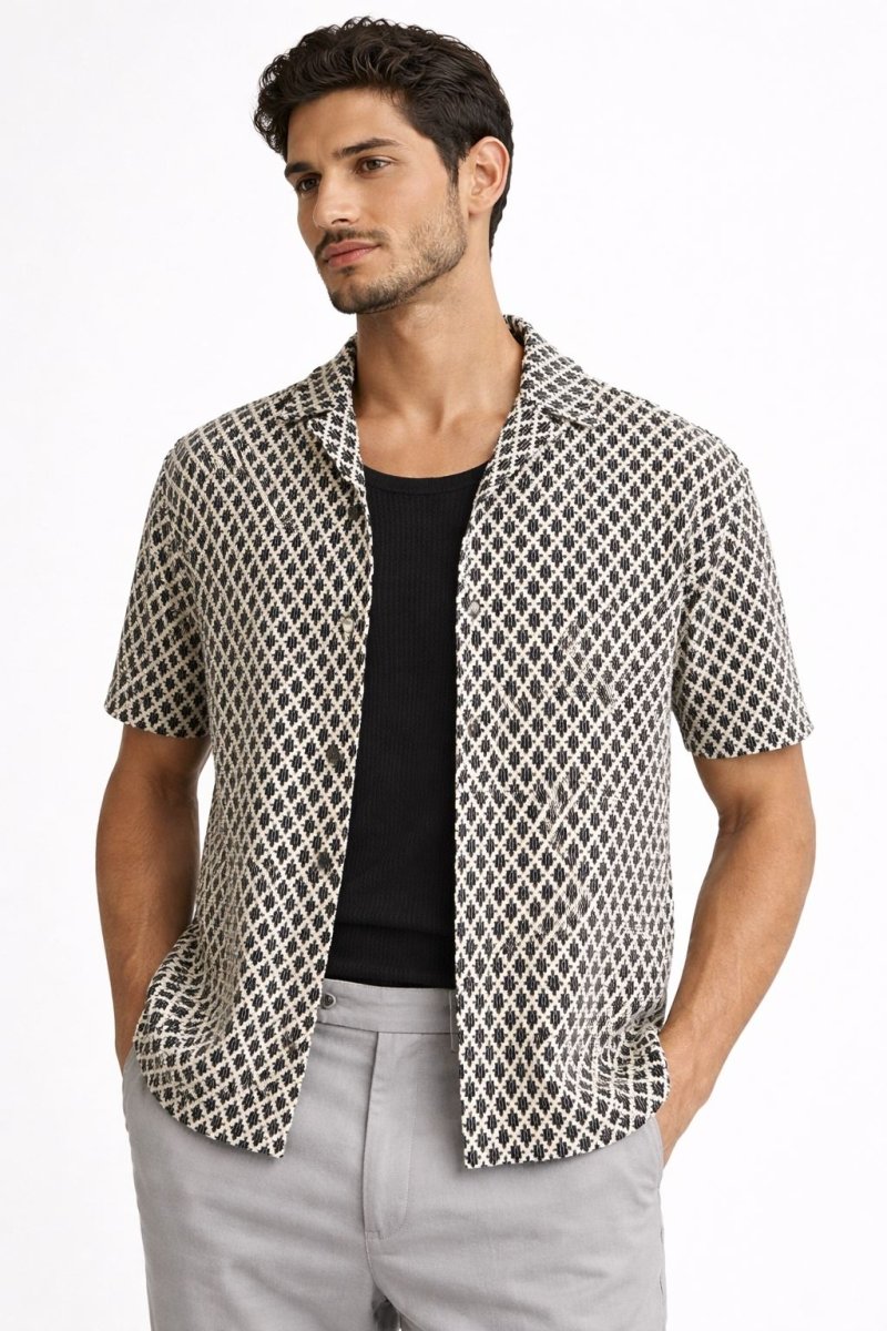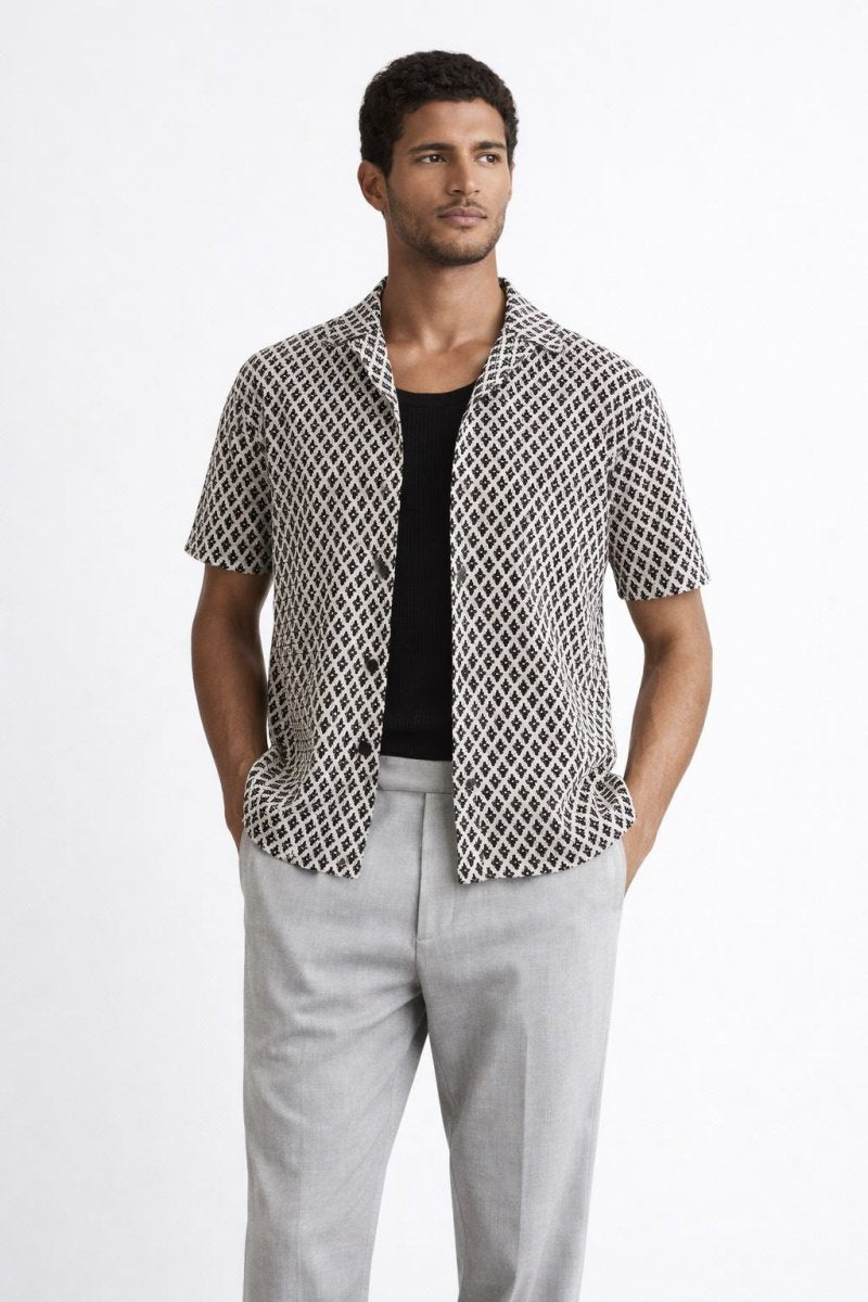 The classic Cuban collar offers a laid-back yet polished look — ideal for summer evenings, holidays or weekend wear. Crafted with premium attention to detail and a breathable textured knit, this shirt makes styling easy and stylish.