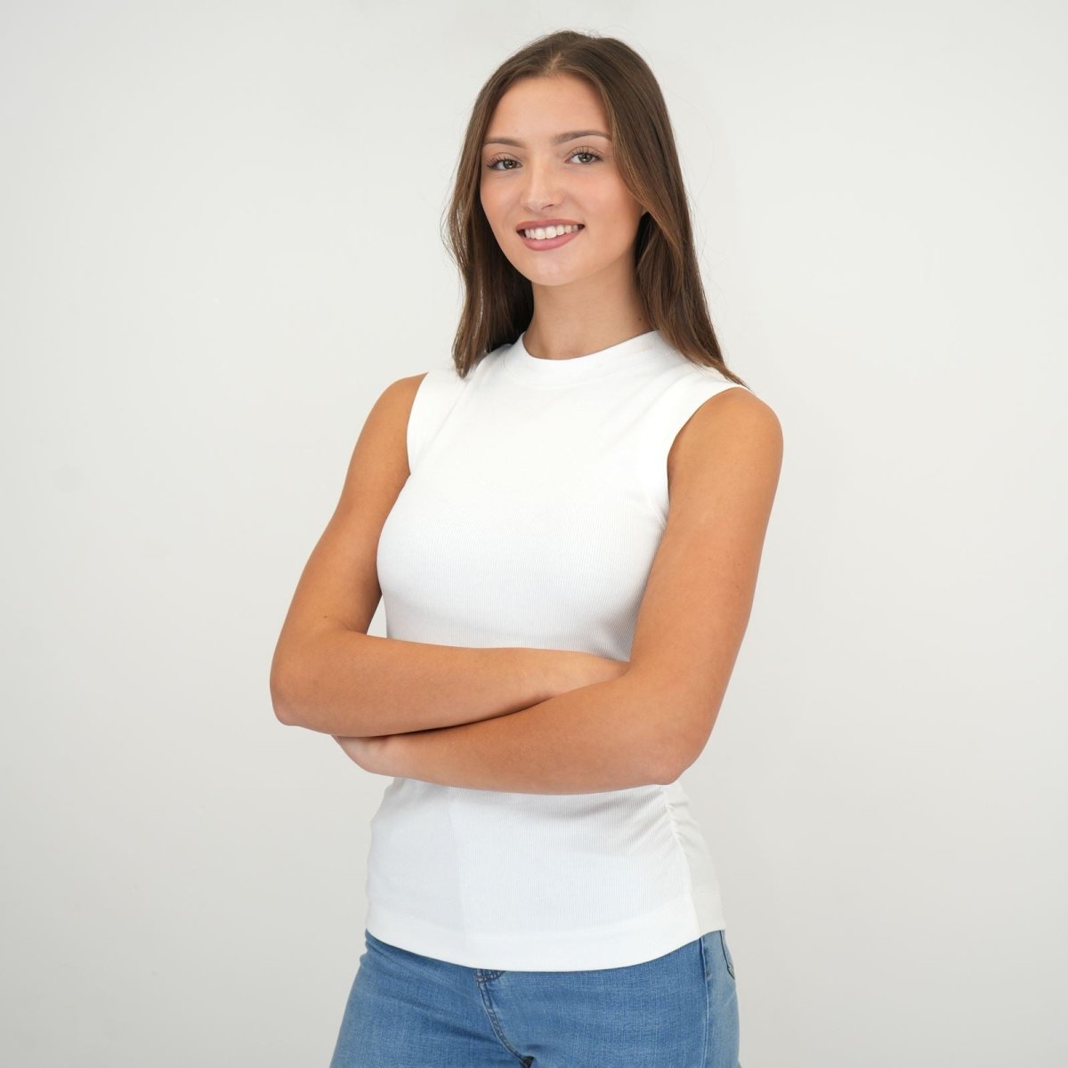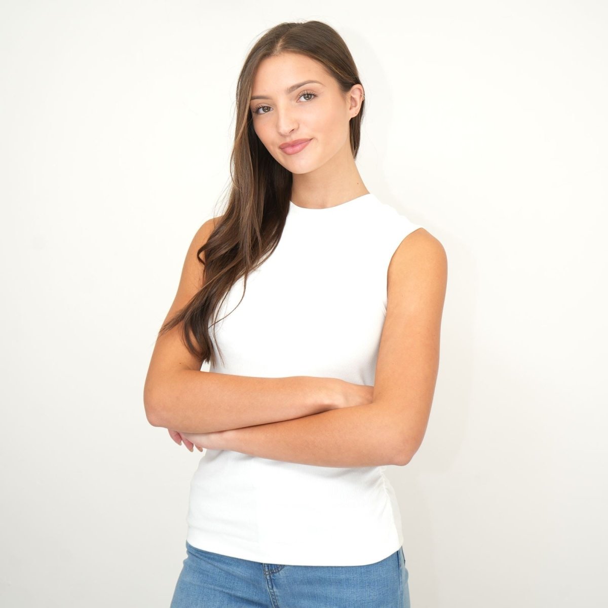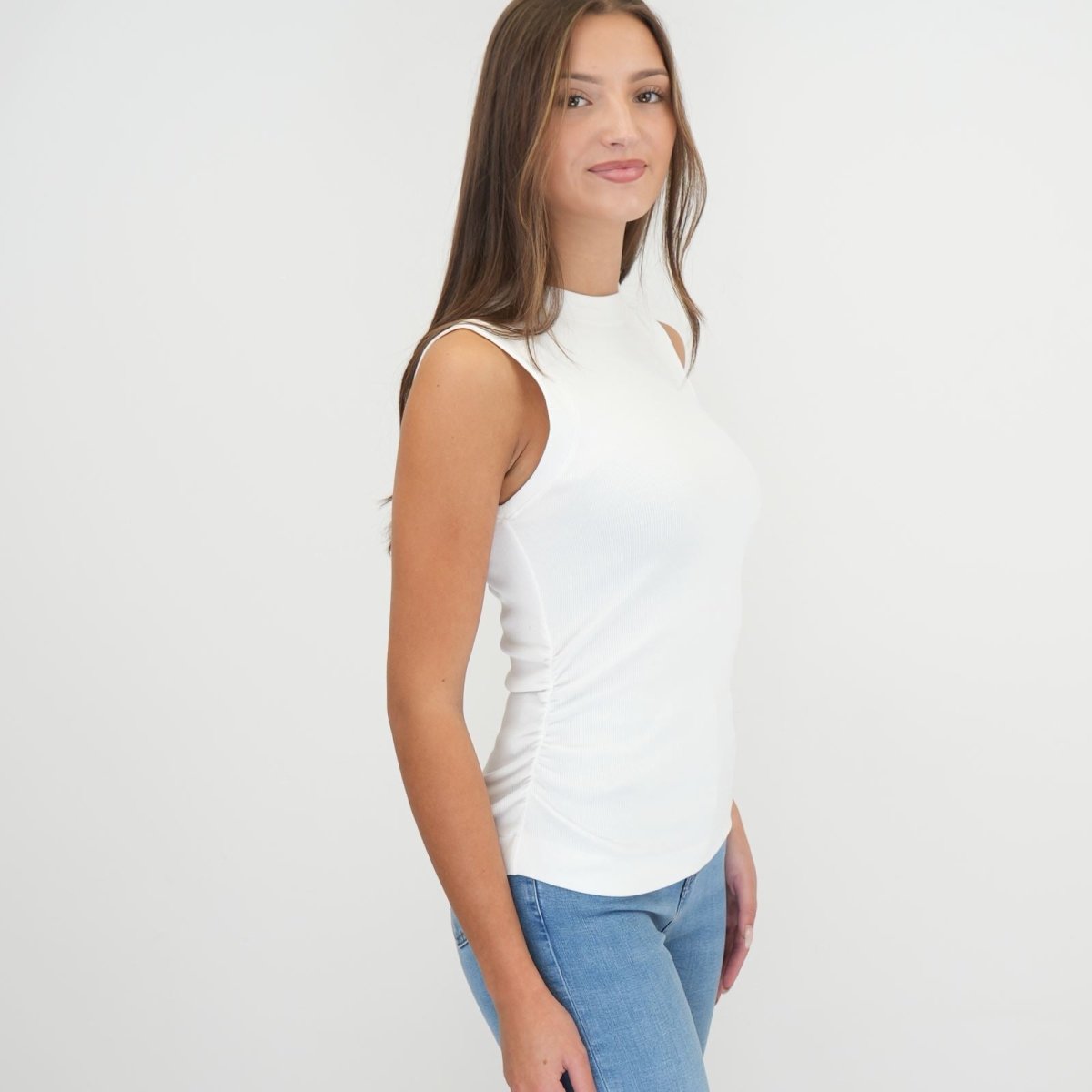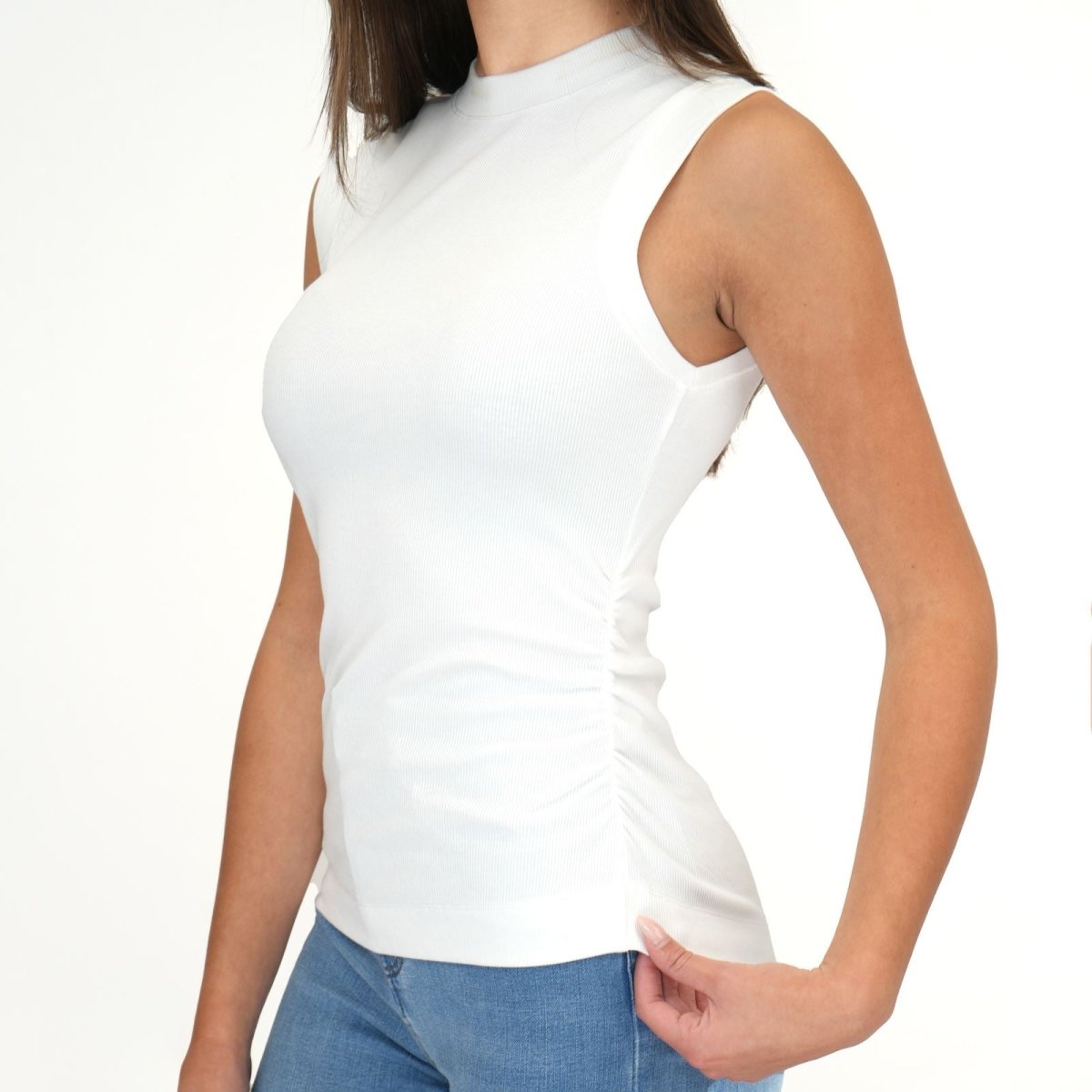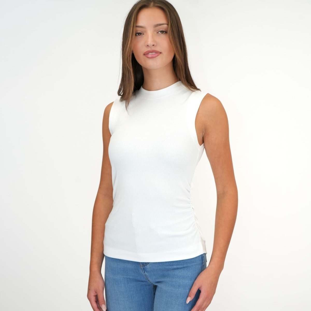 The Reiss Trudy fine-rib ruched vest top in white is a refined wardrobe essential, designed to flatter with subtle ruching and a soft, body-skimming fit. Crafted from premium stretch fabric with a fine-rib texture, this sleeveless top offers comfort, structure and effortless elegance.