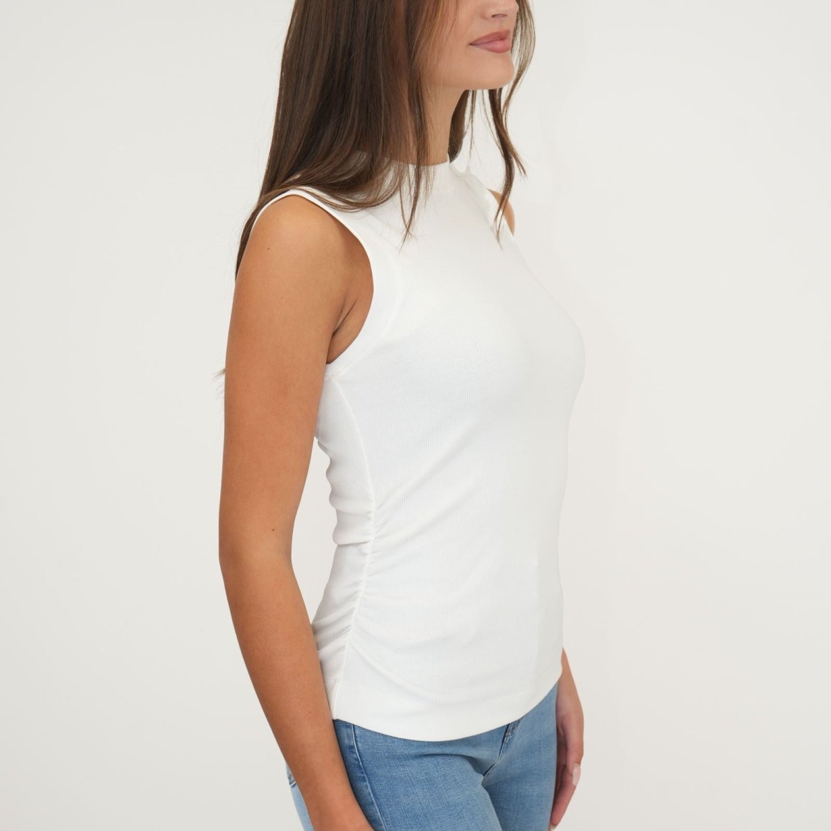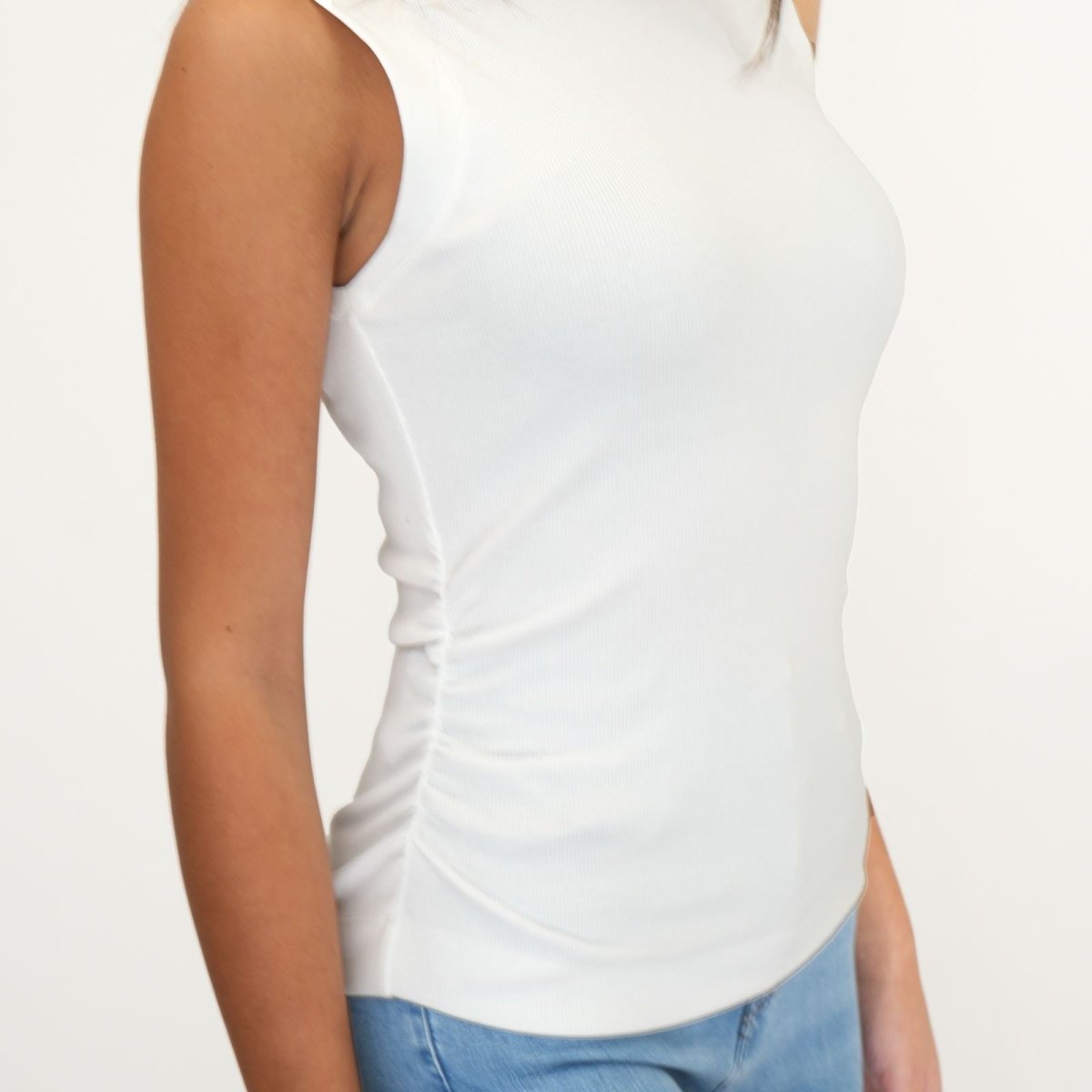 Reiss Trudy Fine-Rib Ruched Vest Top – White