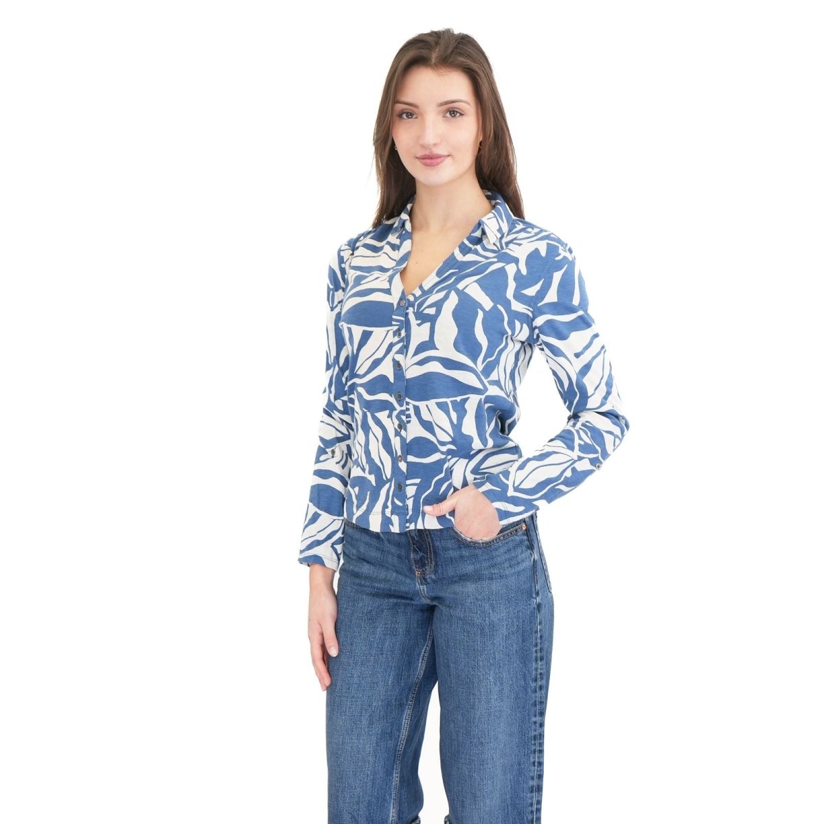 Finished in a distinctive navy multi print, this versatile piece pairs effortlessly with jeans, chinos or casual skirts for relaxed daytime styling.