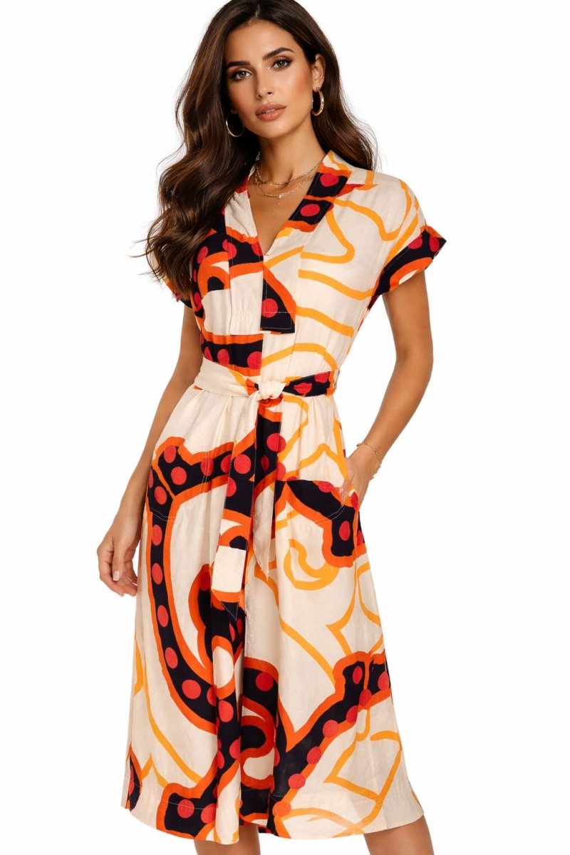 Women’s Abstract Print Linen Dress – Lightweight & Breathable Summer Dress