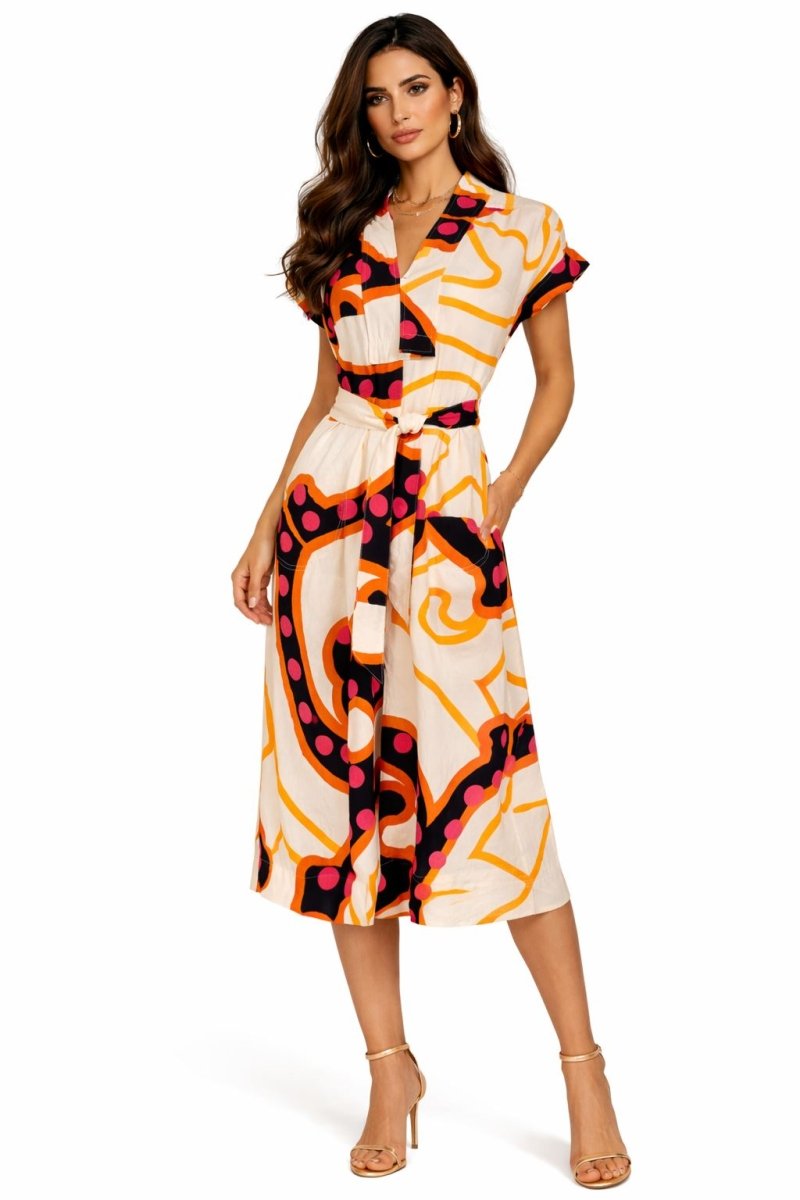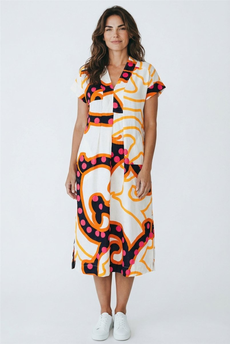 Perfect for holidays, beach days, casual lunches or simply strolling into summer, this midi-length dress pairs beautifully with sandals, espadrilles or sneakers for an effortless seasonal look.