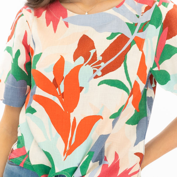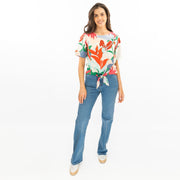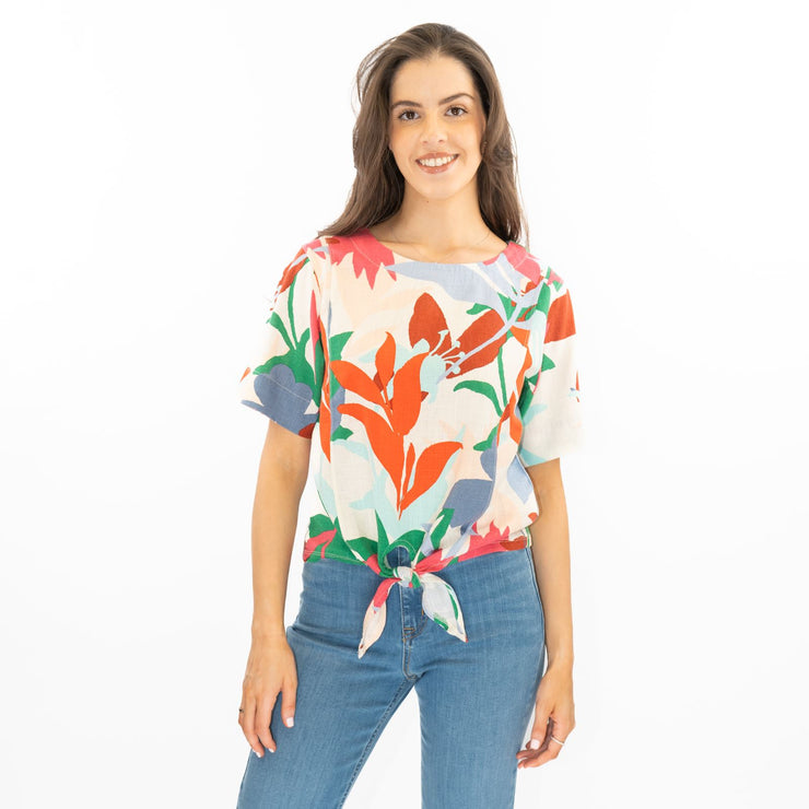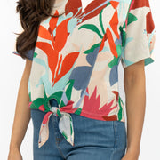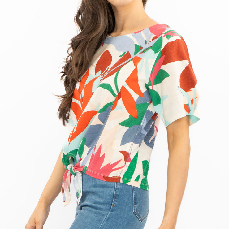 This top is a standout piece with its laid‑back tie detail at the hem, flattering crew neck, and comfy cotton fabric. Pair it with jeans, shorts, or skirts for effortless styling whether you're headed out for brunch, running errands, or enjoying a day in the sun.